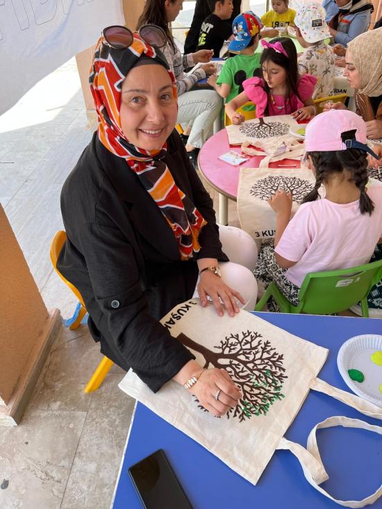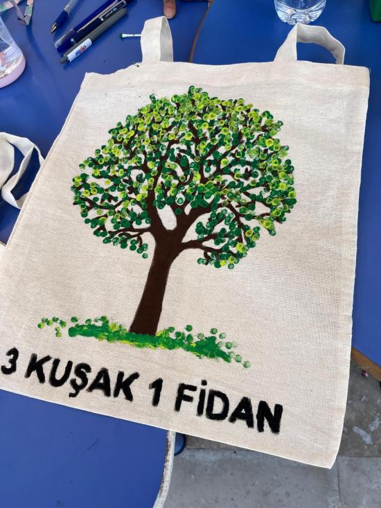 Etkinliğin bir diğer dikkat çekici bölümü ise drama çalışması oldu. Drama, proje sahipleri tarafından hazırlanıp yönetilerek, anneanneler, anneler ve çocukların aktif katılımıyla gerçekleştirildi. Katılımcılar doğayı, paylaşmayı ve birlik olmayı konu alan kısa canlandırmalarla hem eğlendiler hem de düşündüler. Günün sonunda üç kuşak, kumaş üzerine el baskısı çalışması yaptı. Farklı yaşlardan ellerin renklerle buluştuğu bu çalışma, “birlikte büyüyen nesiller” temasını güçlü biçimde yansıttı. “3 Kuşak 1 Fidan” etkinliği; doğa bilincini geliştirmeyi, kuşaklar arası iletişimi artırmayı ve birlikte üretmenin mutluluğunu yaşatmayı amaçlayarak tüm katılımcılara unutulmaz bir gün sundu.