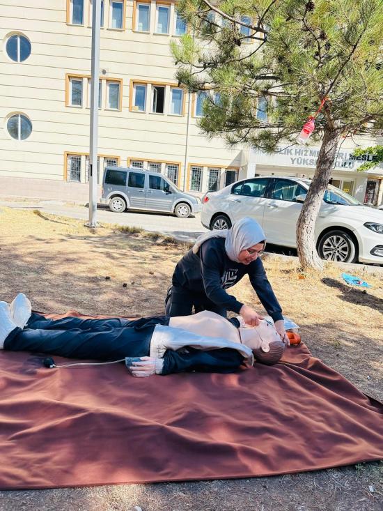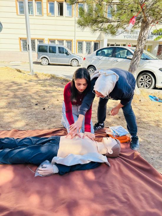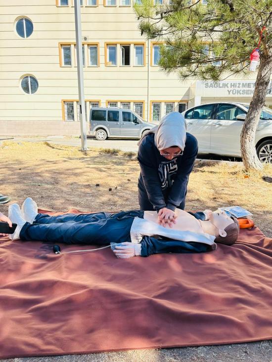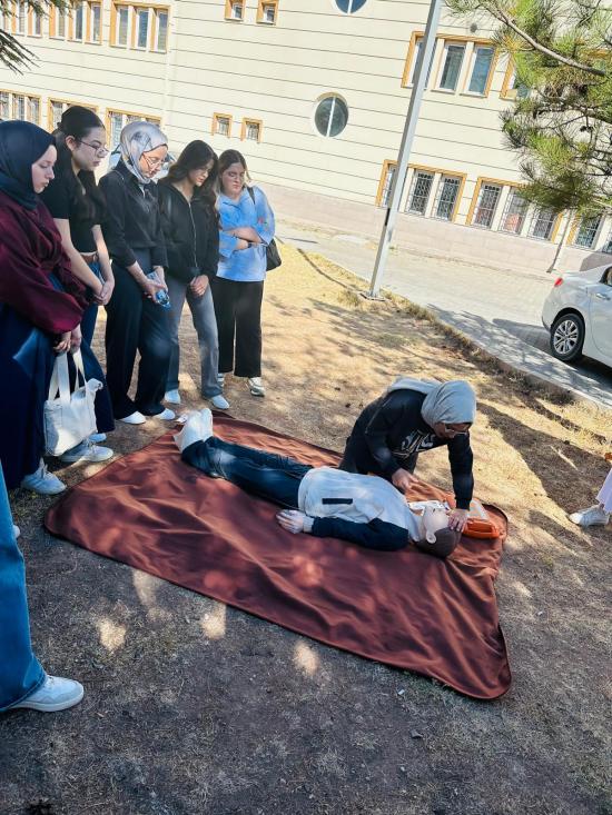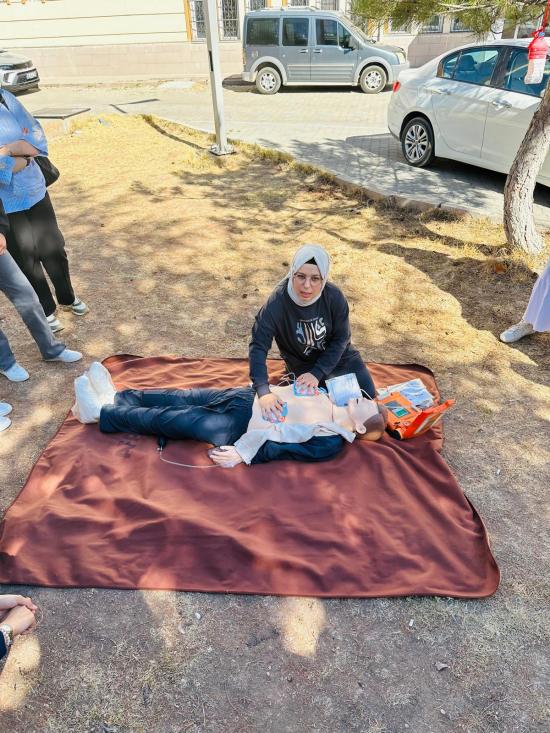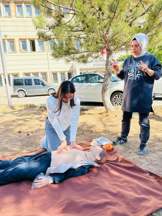 Dersin sorumlu öğretim elemanı Öğr. Gör. Fatma Zehra TÜRKER, her öğrencinin uygulamaları bireysel olarak yapmasına rehberlik ederek, teorik bilginin pratiğe aktarılmasına olanak sağladı. Bu etkinlikle öğrencilerin acil durumlarda doğru ve hızlı müdahale becerilerinin geliştirilmesi amaçlandı.