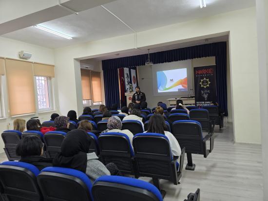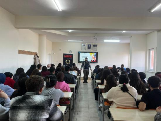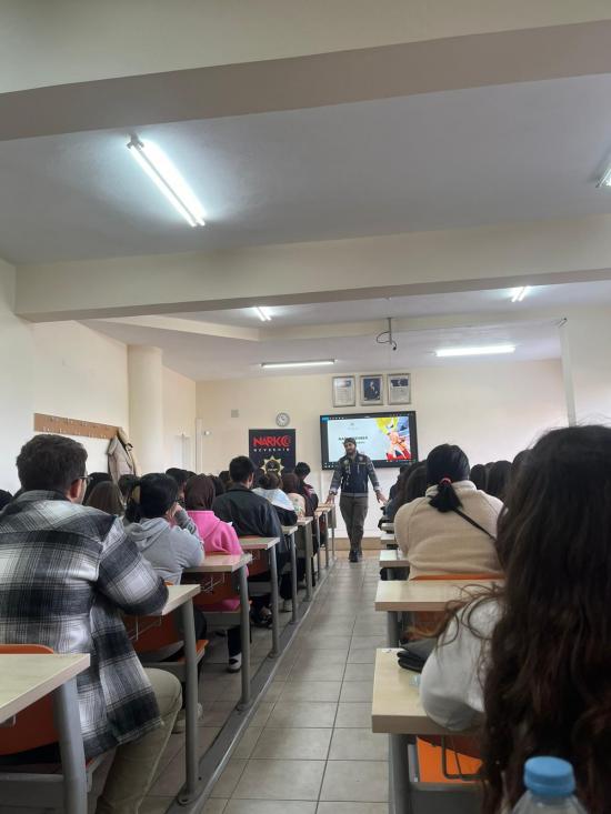 Nevşehir Emniyet Müdürlüğü Narkotik Suçlarla Mücadele Şube Müdürlüğü tarafından yürütülen Narko Rehber faaliyetleri kapsamında, Polis Memuru Sn. Akif Kılıçkaya tarafından Meslek Yüksekokulumuz birinci sınıf öğrencilerine yönelik kapsamlı bir farkındalık eğitimi gerçekleştirildi.