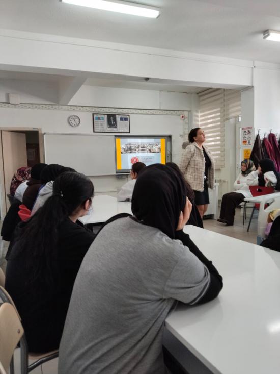 Meslek Yüksekokulumuz Öğretim Görevlisi Dr. Kevser Çağla Gurlaş, Nene Hatun Kız Mesleki ve Teknik Anadolu Lisesi Hasta ve Yaşlı hizmetleri bölümü öğrencilerine yönelik “Yaşlı Bakım Alanında Kariyer Olanakları” konulu bir eğitim gerçekleştirdi.
