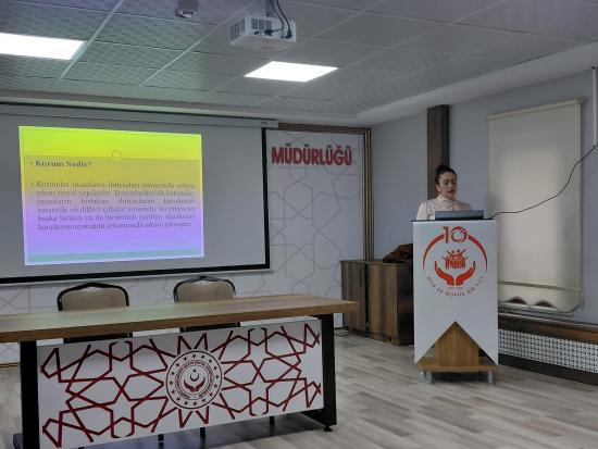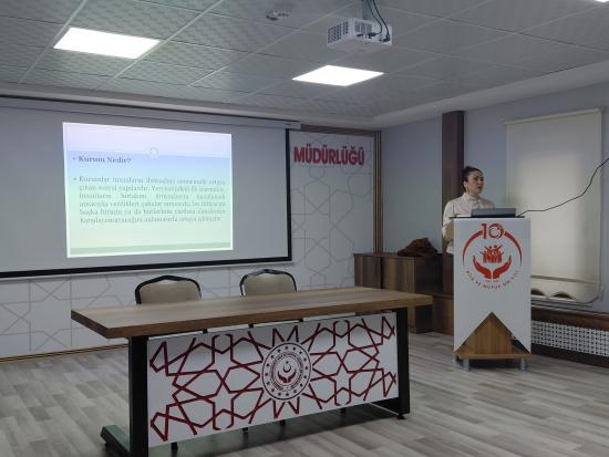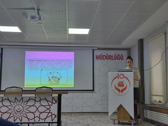 Meslek Yüksekokulumuz öğretim elemanlarından Öğr. Gör. Nurdan Demir, Nevşehir Aile ve Sosyal Hizmetler İl Müdürlüğü ve bağlı resmî kuruluşlarda görev yapan personele yönelik olarak planlanan “Kurumsal İletişim” konulu eğitim programında görev aldı.